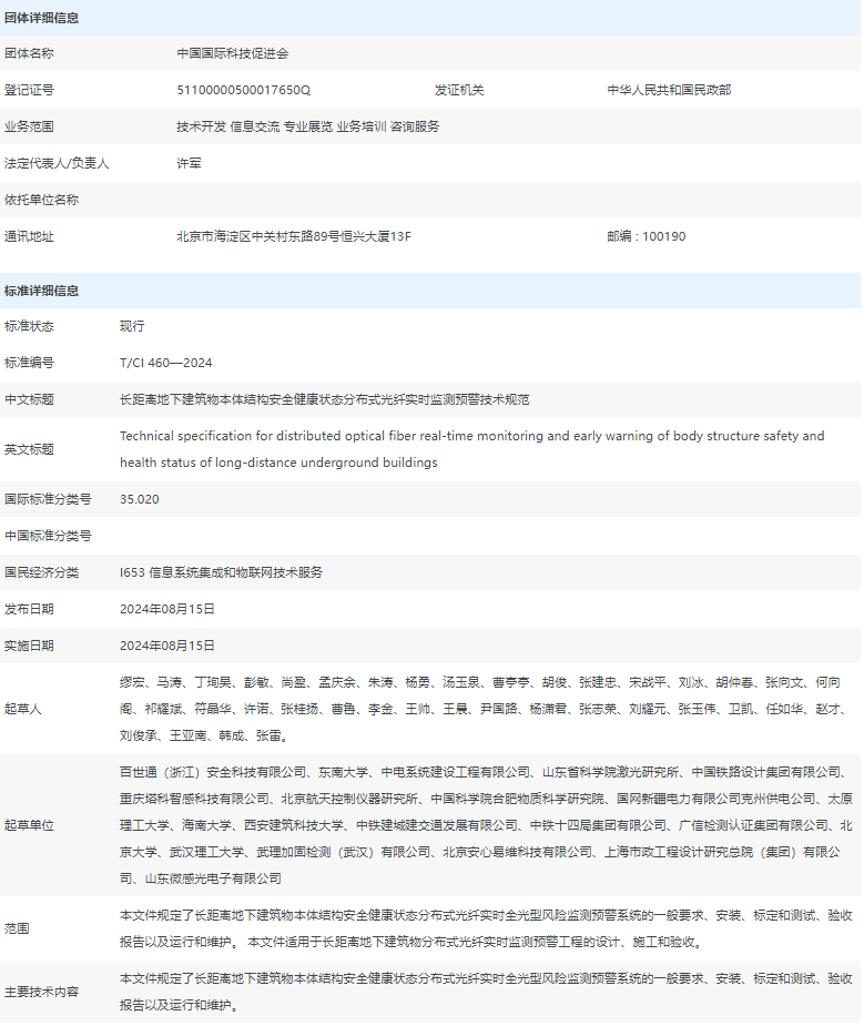 公海彩船6600(浙江)牵头起草的团标“长距离地下建筑物本体结构风险监测预警”发布。